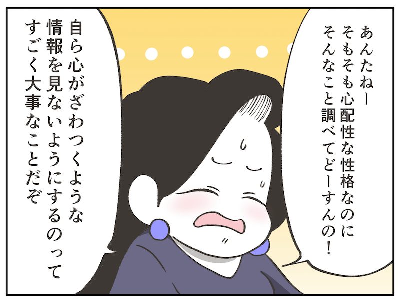 今回のように何か心がざわつく出来事があったとき、そのことについて必死に調べようとしてしまう人もいるかもしれません。そこには「なるべく多くの情報を収集して気持ちを落ち着けたい」という心理が働いているように思います。