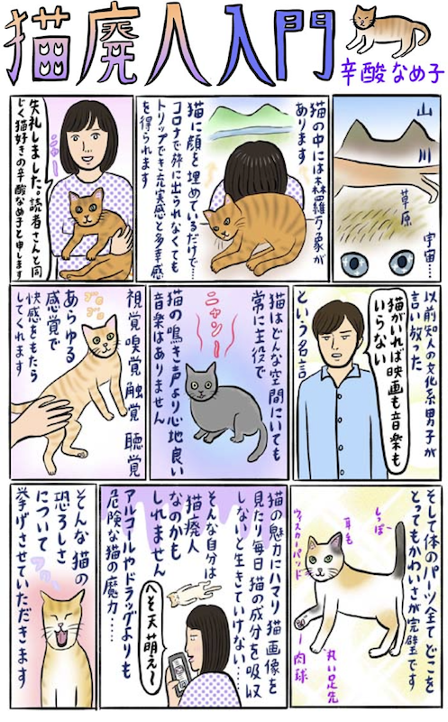 漫画家の辛酸なめ子さんは猫の魅力にハマり、毎日「猫の画像を見て、猫の成分を吸収しないと生きていけない」と言うほどの愛猫家。そんな辛酸なめ子さんが“愛猫家あるある”を描いた「猫廃人入門」。あなたはいくつ当てはまりますか?