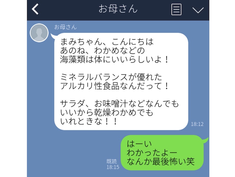 でも、一人暮らしなどをしていると、正直、なかなか自炊するのが難しい時ってありますよね。それでもお母さんたちは、しつこく健康情報をシェアして、健康を気遣ってくれるのです。