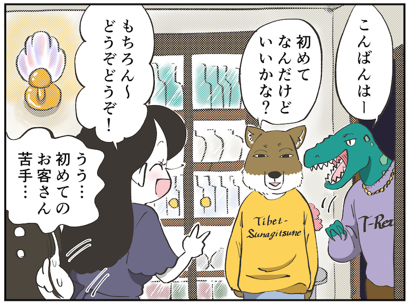 自信がほしい主人公。常連さんには慣れたが、初めてのお客さんはまだ苦手。特にチベットスナギツネタイプと恐竜タイプのお客さんは苦手。