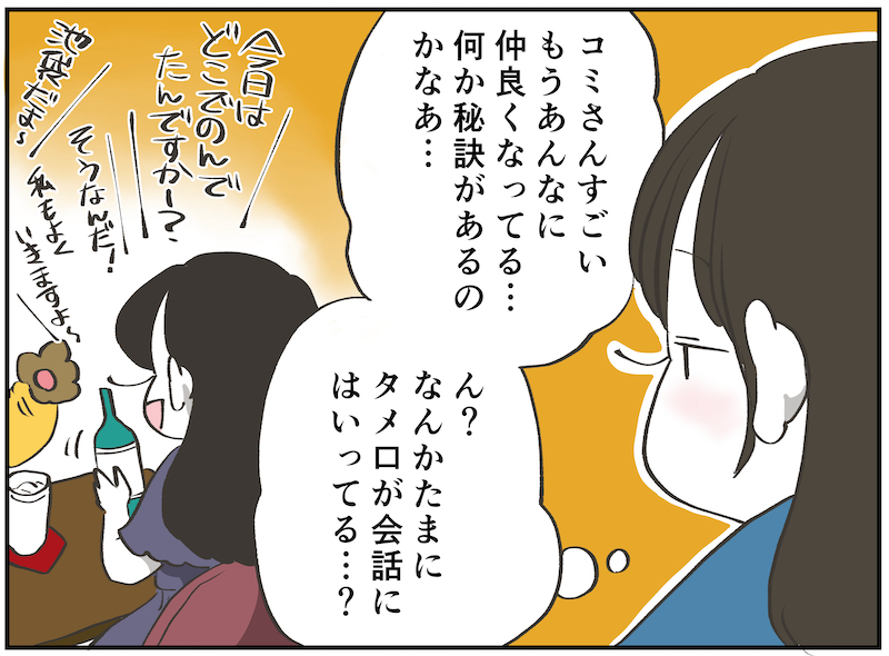 最初は9.8:0.2、次は9.5:0.5……という感じで、本当に少しずつタメ口の割合を調節するのがポイントです。もし仲良くなりたいと思う人がいるなら、ぜひやってみて下さい。でも加減は間違えないように気をつけて!