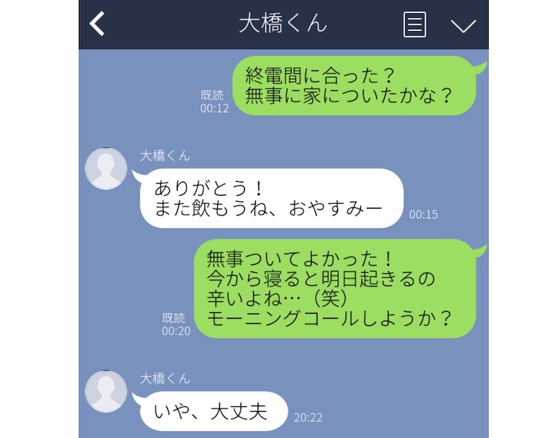 これも女性がよくやってしまう、心配確認LINE……。「家に無事ついた?」「朝起きられる?」と、親切のつもりで送っているのですが、男性からしてみれば「お母さんか!」と言いたくなってしまうそう。
