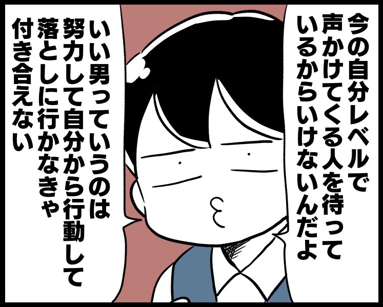 いいですか皆さん! 優しくて、収入がよくて、清潔感があるような理想の男性像と付き合いたいと望むのであれば、自分も努力して、いいなという男性を自ら見つけて落とすべし!