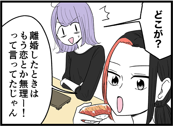 この漫画の主人公・リコちゃんも、離婚したばかりのときは「もう女としての価値なんてない……恋とか無理……」と自分を責めていました。新しい恋も終わった今、思うこととは……?