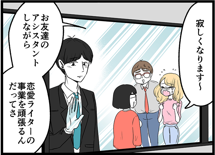 リコの会社の同僚で、元カレ。重度のアイドル・アニメオタク。お別れのときは突き放した言い方しちゃったけど……冷静になって、やっぱり僕はリコさんを応援したいなって思いました。どうか、幸せになってくれますように。