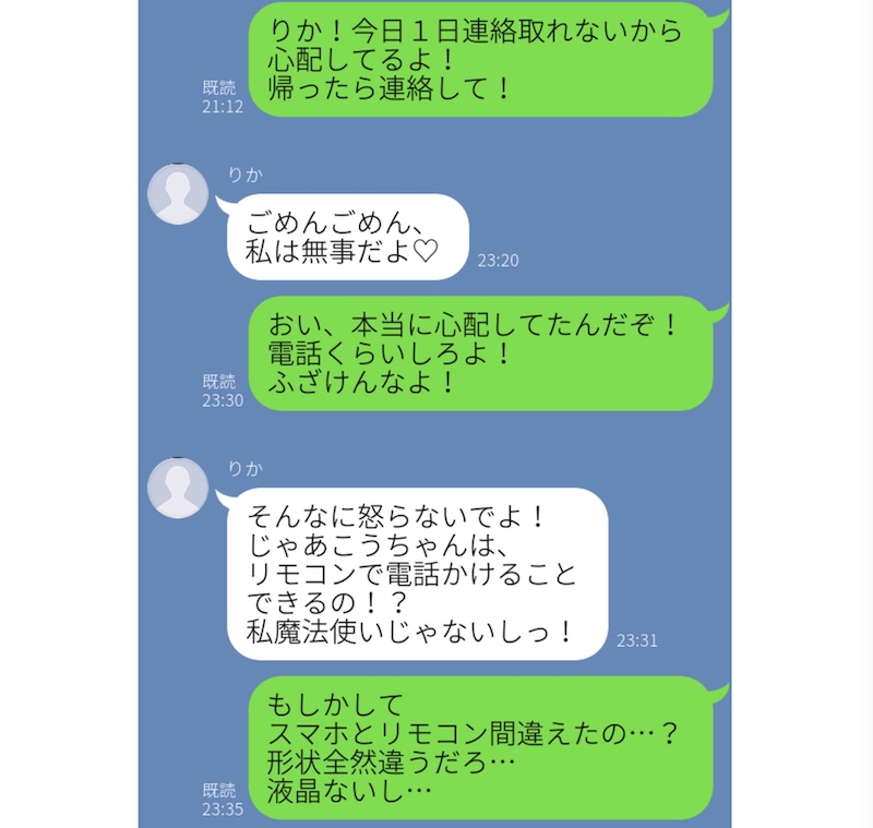 心配していたこともあり、責めてしまったところ、妻も逆ギレ。「あなたはリモコンで電話かけられるのっ!?」と一言。この瞬間、妻はスマホとリモコンを間違えて持っていたと察し、これ以上責めるのはやめたそうです。(笑)