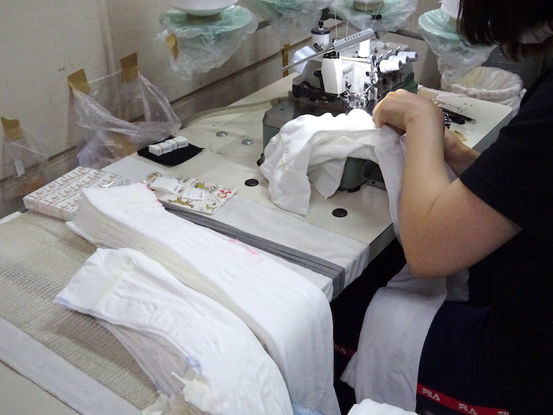製品ができあがる工程を見学させていただいた今回。女性であれば、絶対見たことがあるレギンスの“股の部分にある三角の布”。実は、これもミシンを使って一つ一つ手作業で縫い込んでいたのを見て、本当に脱帽しました。