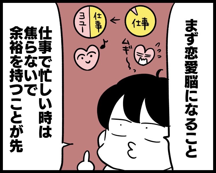 例えば、ものすごく仕事が忙しかったり、私生活で辛いことがあったりと心に余裕がない状態であれば、恋愛をする余裕なんてないはず……。まずは自分の状態を整理することが最初のステップです。