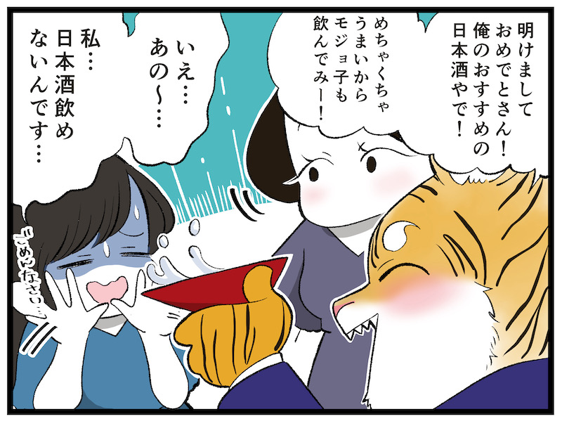 モジョ子の先輩。自分がこうと決めたら必ずやり遂げる意志の強さがある。モジョ子の成長を見るのが楽しみ。今年の目標は肝臓を労わることと、健康診断にいくこと。