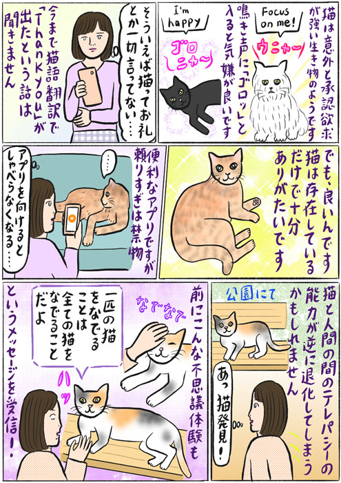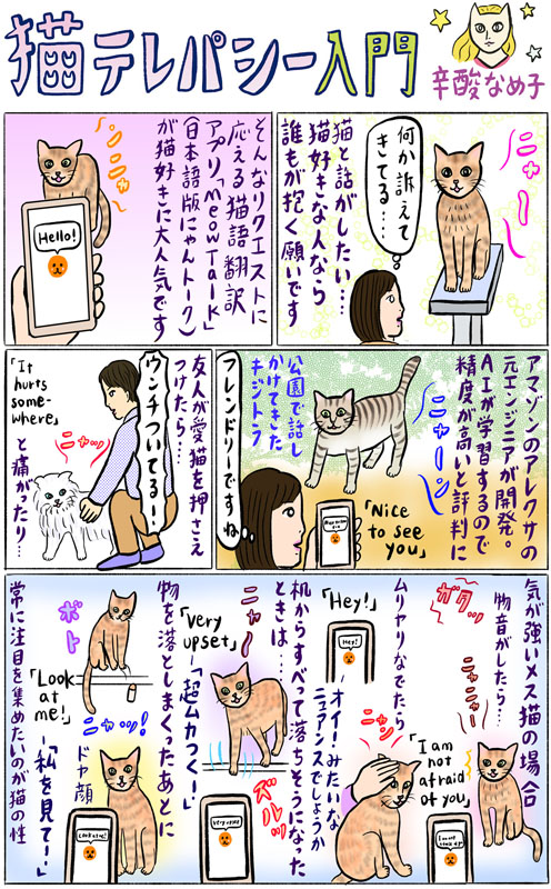 漫画家の辛酸なめ子さんは、猫の鳴き声を翻訳してくれるアプリ「MeowTalk」で猫との絆を深め、改めて気付いたことがあるそう。大好きな猫があんな仕草こんな仕草で送り続けるメッセージ、あなたはいくつキャッチできていますか?