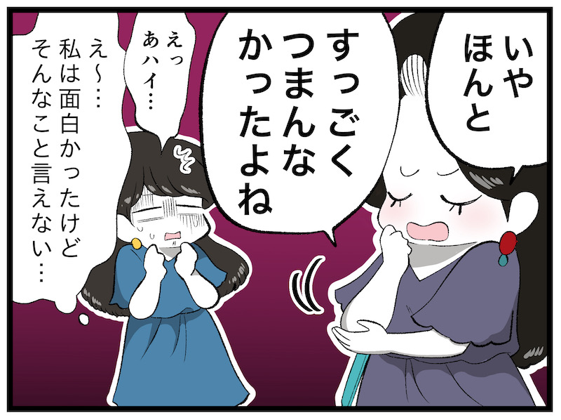 思わず「つまらん!」と声が出てしまいそうになる時は必ず、先輩の言葉を思い出すようにしています。「もしもつまらないと感じるなら、あんたはお客じゃなかったってこと」。これは漫画家の先輩方にも、スナックのお姉さんたちにも言われました。