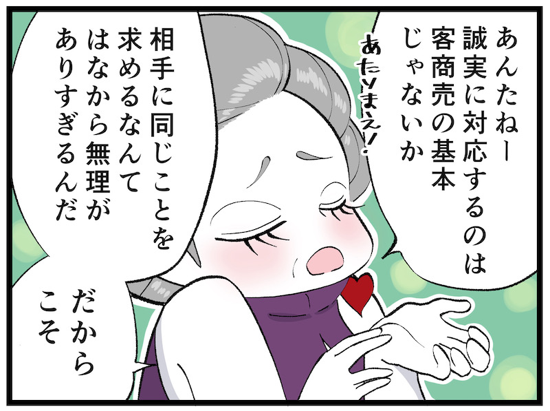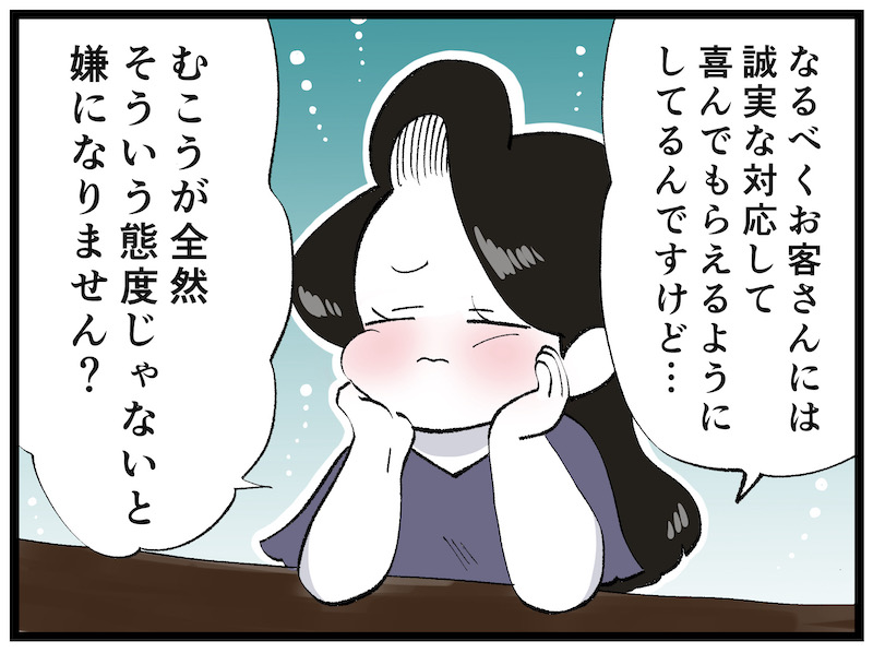 ある時、すごく苦手なお客さんがいて、他のお客さんと同じように接客ができなくなってしまいました。なぜなら、そのお客さんから全く誠実さを感じられなかったからです。