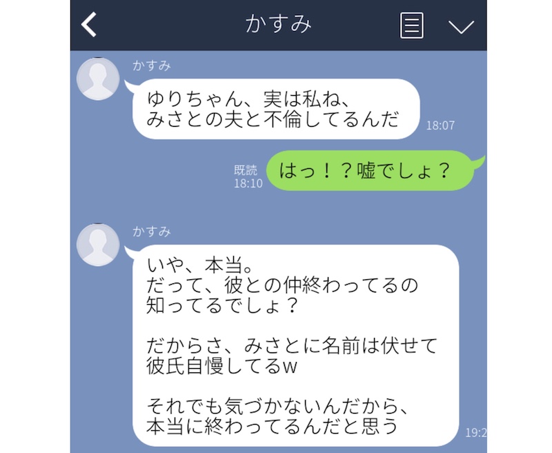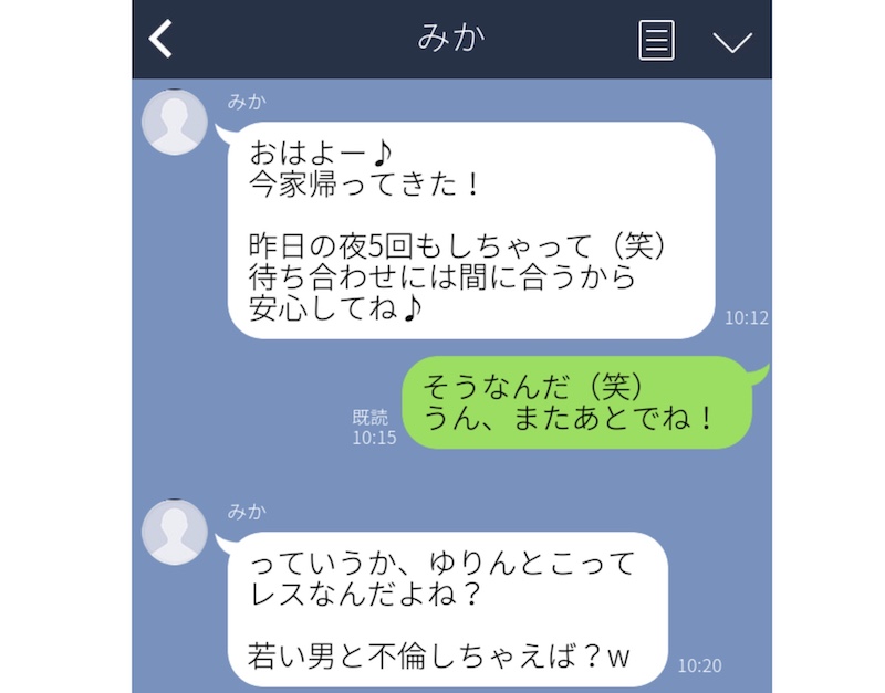 人の夜の生活に口を出してきたうえ、不倫を勧めてきた友達に対して、この女性はドン引きしてしまい、今は距離を置いているそうです。たった一つのLINEで、友情関係が終わってしまうこともあるんですね。