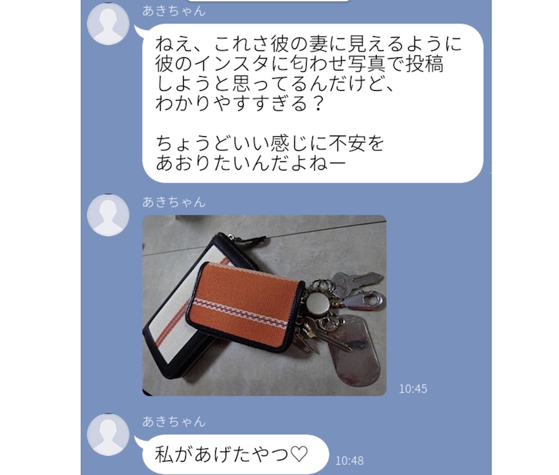 バレるかバレないかくらいの匂わせ写真をわざわざ投稿して、不倫相手の妻の不安をあおりたいという彼女のことを、もう友達だとは思えないそうです。