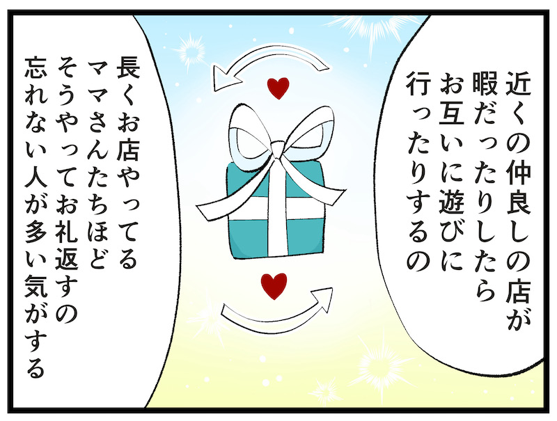 これを知ってか知らずか、人気のあるお姉さんやお店のママは、いつもお返しをしているイメージがあります。いつも来てくれているから、他のお客さんを連れてきてくれたから、ご馳走になったから……。