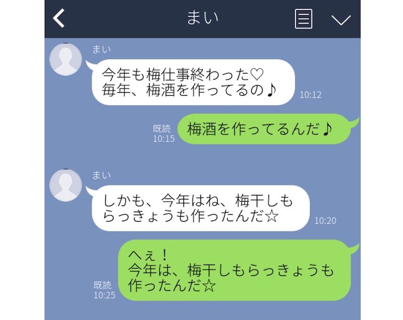 こちらのLINEのように、語尾もほとんど同じにし、記号や絵文字を使っているなら、それもまったく同じものを使って「おうむ返し」してみてください。