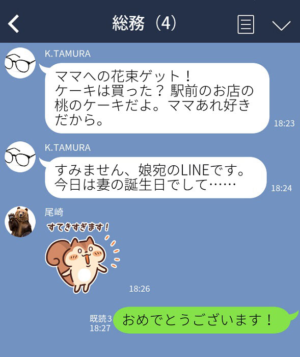 翌日の朝礼で、改めてLINEの誤爆を謝罪されたのですが、その時の照れまくっている表情も印象的でした」
