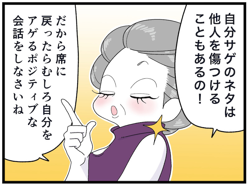 自分をネタにするのが悪いとは思わないですが、その場合は対象を自分より外に広げないことが大事だと思います。