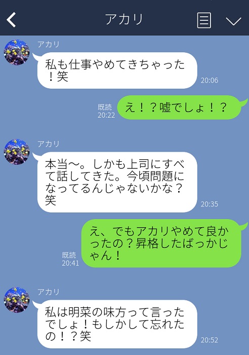 そしたら、同じ職場の友達から『私もやめてきた』とLINEが来てビックリ。これまでに私がされてきたことや、私が退職した本当の理由を上司にすべて話したようです。