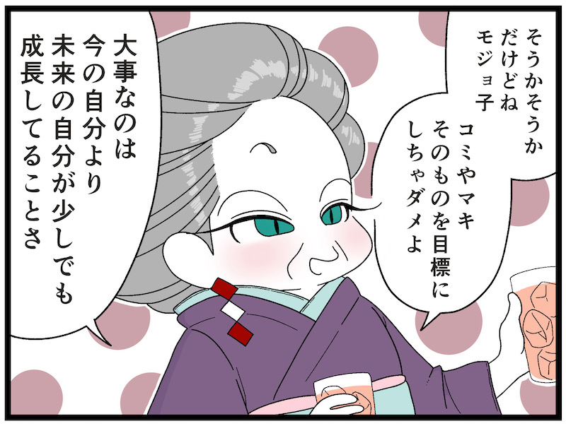 コミ:モジョ子の先輩。売れっ子ホステスだが酒癖が悪い。マキさんに憧れている。