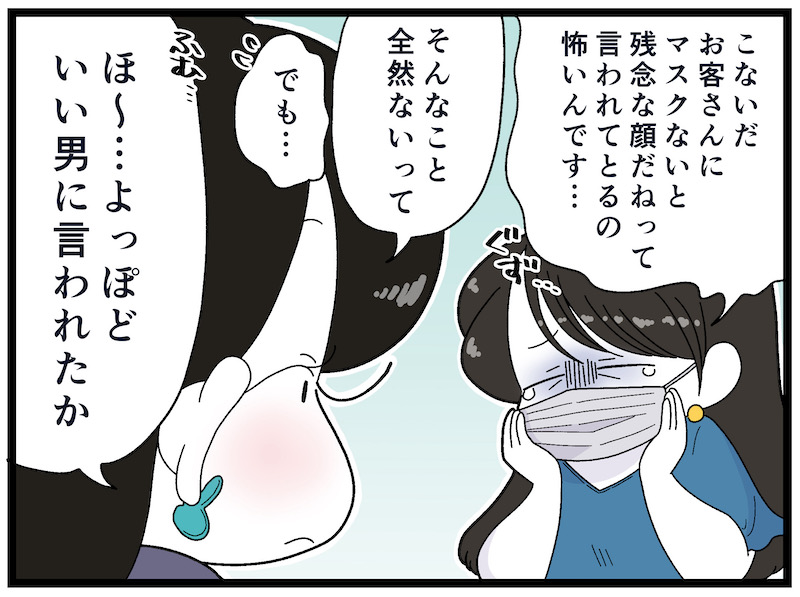 でもある日、お客さんがカウンター越しで私の口元を手で隠しながら「うーん、お前はどこが残念なんだろ? やっぱ顔の下半分かな?」と言ってきたのは忘れられません。