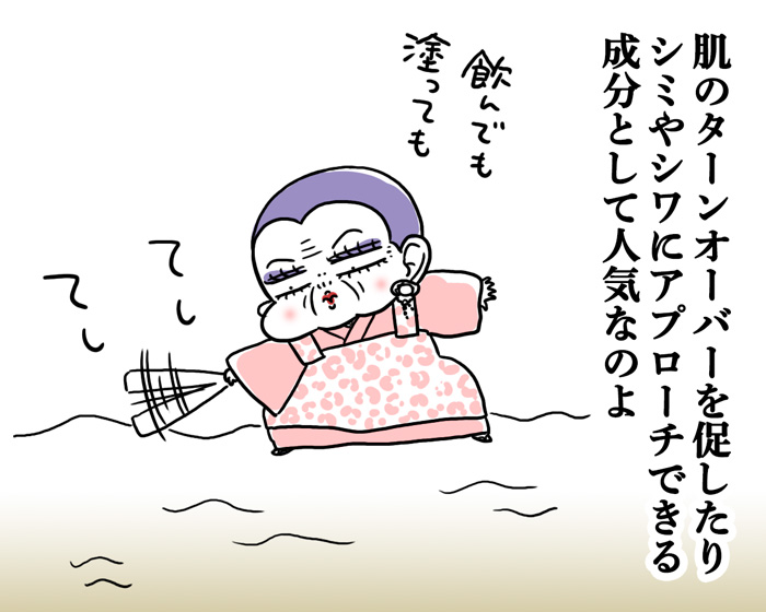 「たとえば、処方薬のトレチノインはシミやシワ、ニキビの治療薬として使われているけれど、使用量を間違えると赤みやかゆみ、乾燥などの副作用が過剰に出てしまうことがあるわ。飲むタイプの場合、ビタミンAは脂溶性ビタミンだから、摂取量に気をつける必要があるわね」