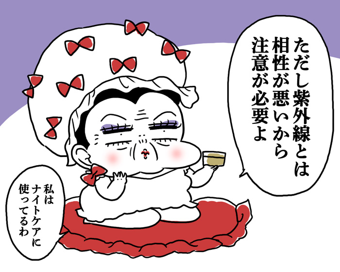 レチノールには合う合わないがあって、さらに使い方にも注意が必要だから、よくわからないまま始めるのはおすすめしないわね」