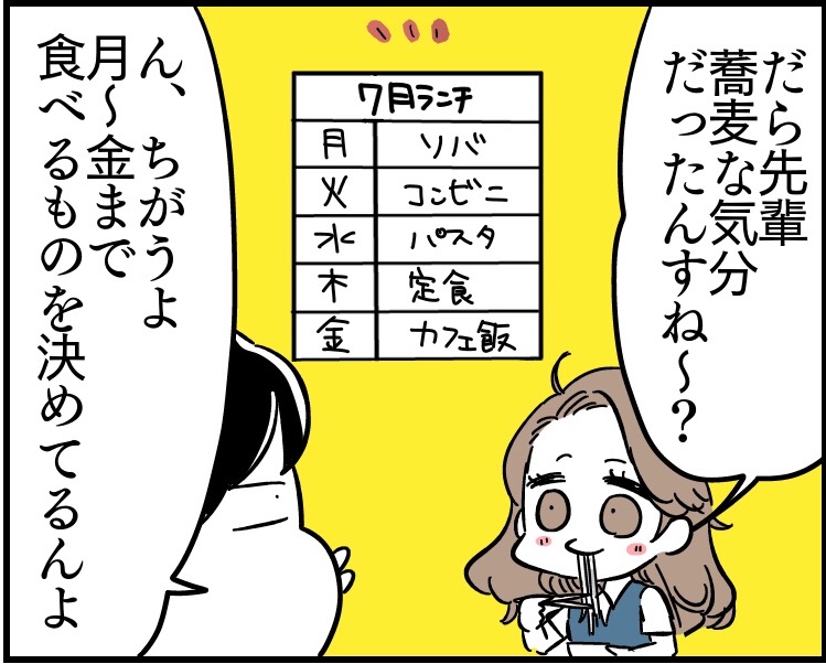 「え~、その日の気分によって何を食べるか決めたい!」という気持ちもわかるのですが、1秒でも長く会社でダラダラするには、昼食を迷うだけの時間はあまりにもムダ。