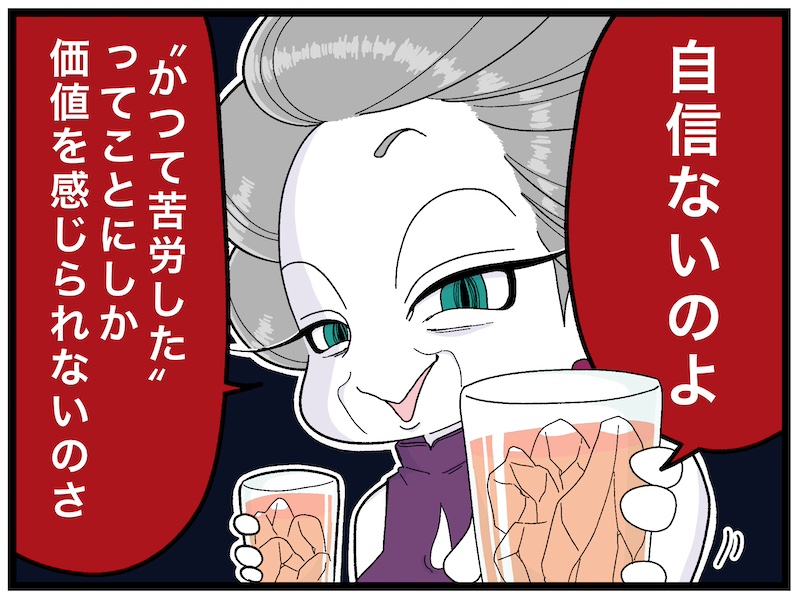 イヤミマダムは、昔の苦労話をする時は輝かしい顔をしますが、学びマダムはうんざりした顔をします。