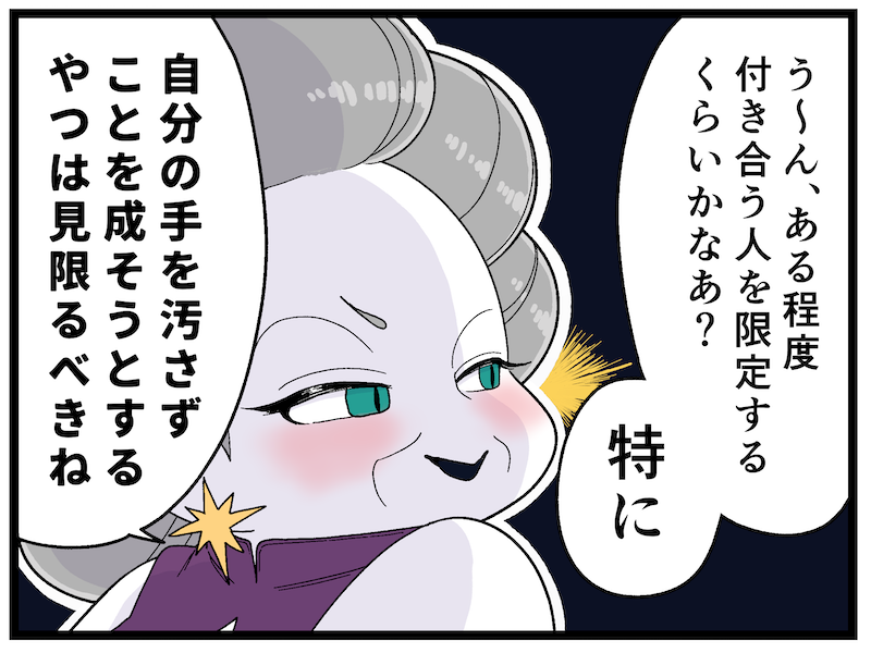 「わかった。じゃあ、あんたの周りで自分の手を汚さず、他人にやらせようとする人がいたら、その人と個人的に付き合うのはやめなさい。それだけで劇的に変わるから」