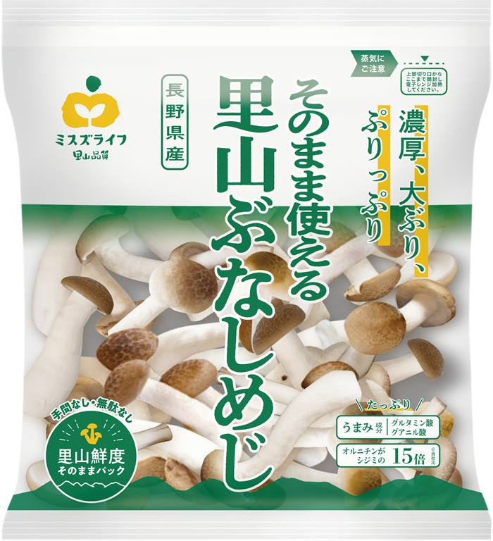 なかでもミスズライフの 「そのまま使える里山ぶなしめじ」は、その名の通りすでにカットされている優れもの。