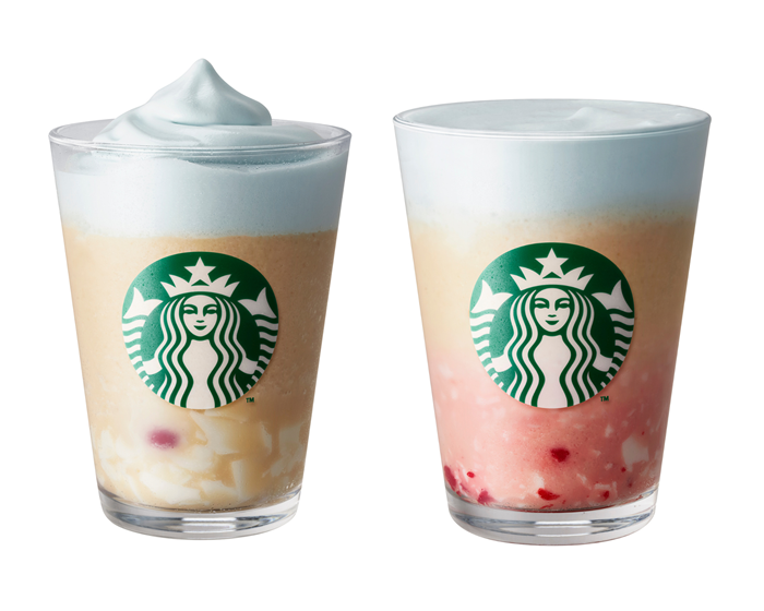 スターバックス史上初、カップの中に入っているボールを割ることで味が変わるんです。リリースを見る限り、春の空をイメージした水色のミルクムースも素敵ですねえ。