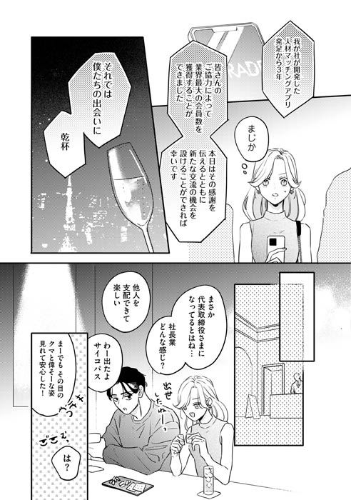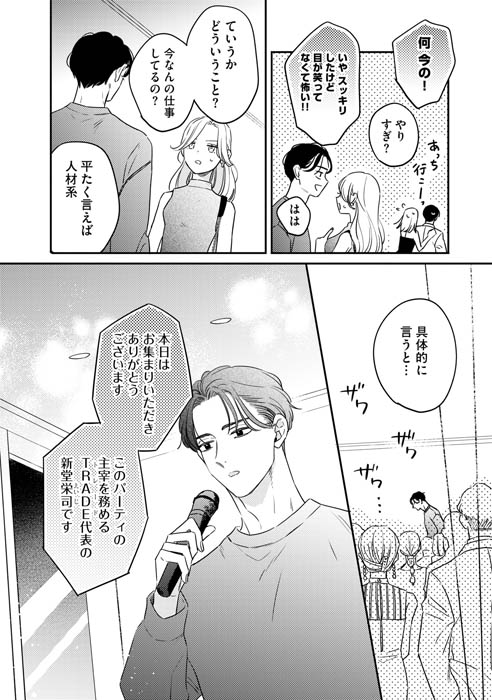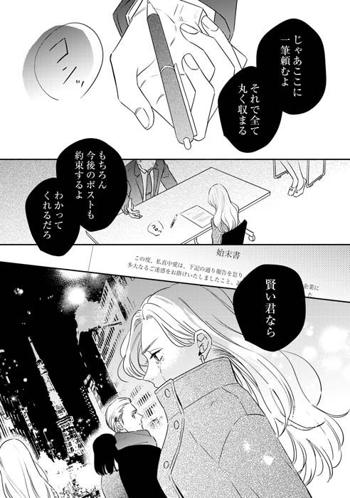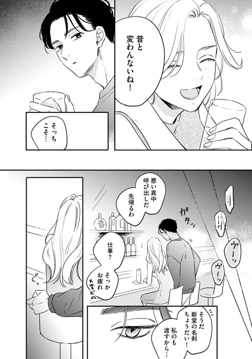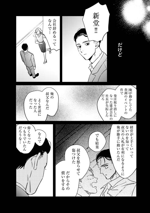 そんな時、かつての同僚・新堂栄司と再会する。ビジネスで成功を収め、以前と変わらない様子の新堂に信頼を置く真中。だけど、何かが昔と違う――。この再会をきっかけに、真中は新堂のある計画に巻き込まれていく…。難儀な2人による、インモラルな復讐ロマンスが開幕!