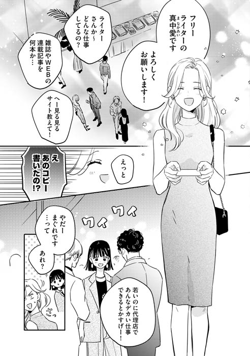 広告代理店を辞めてフリーライターとなった真中愛は、5年ぶりにかつての同僚・新堂と再会します。