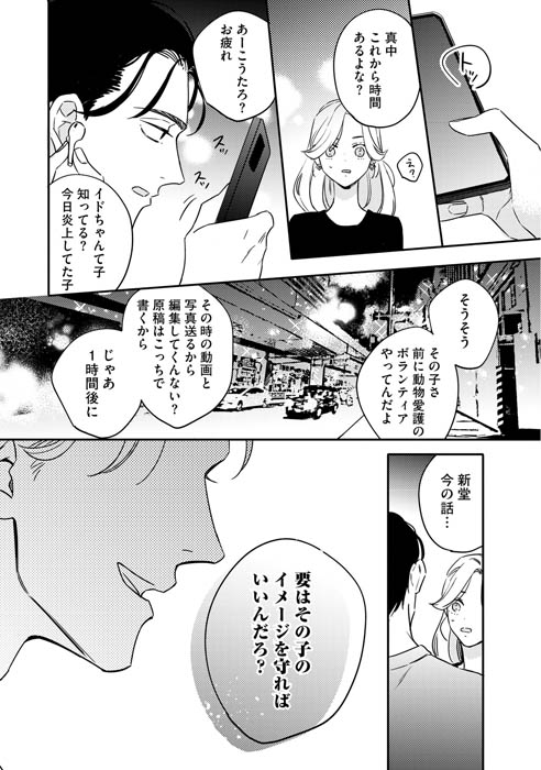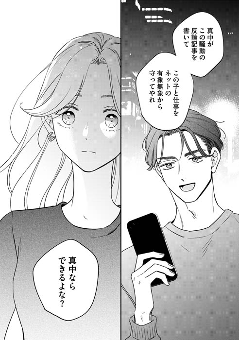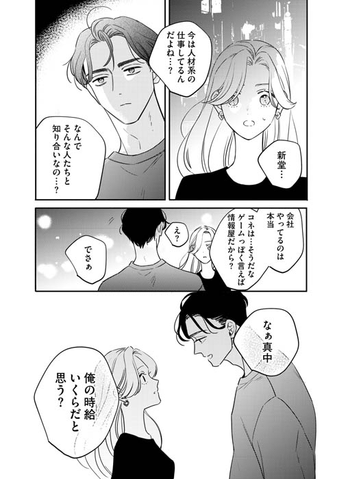 そんな時、かつての同僚・新堂栄司と再会する。ビジネスで成功を収め、以前と変わらない様子の新堂に信頼を置く真中。だけど、何かが昔と違う――。この再会をきっかけに、真中は新堂のある計画に巻き込まれていく…。難儀な2人による、インモラルな復讐ロマンスが開幕!