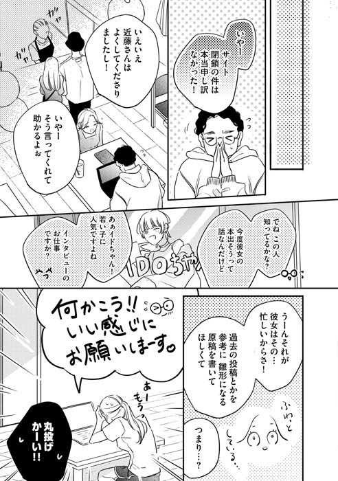 広告代理店を辞めてフリーライターとなった真中愛は、5年ぶりにかつての同僚・新堂と再会します。