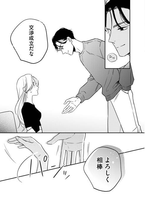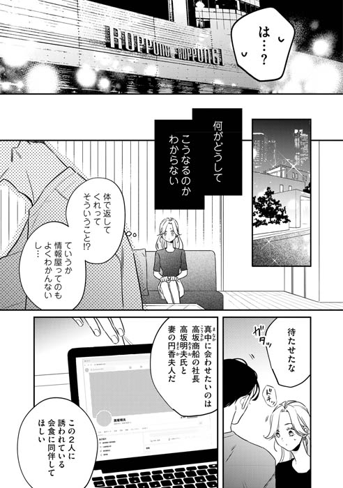 そんな時、かつての同僚・新堂栄司と再会する。ビジネスで成功を収め、以前と変わらない様子の新堂に信頼を置く真中。だけど、何かが昔と違う――。この再会をきっかけに、真中は新堂のある計画に巻き込まれていく…。難儀な2人による、インモラルな復讐ロマンスが開幕!