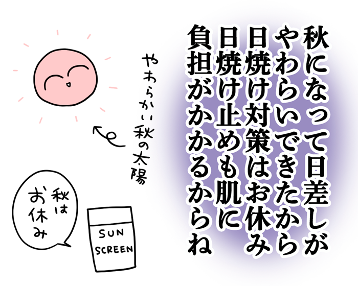 「だって、夏じゃないから日焼け止めを塗らなくていいですし、冬ほど乾燥しないから保湿ケアも不要ですよね?」