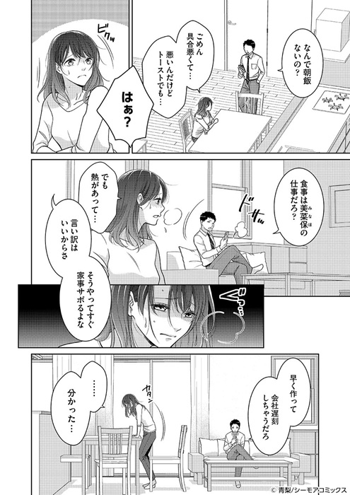 美菜保と祐一は結婚5年目の共働き家庭。夫のモラハラに耐えてきた美菜保だがある時体調を崩してしまう。祐一はそれにも関わらず美菜保をこき使い続け、倒れて救急車で運ばれたのに心配するどころか悪態をついてくる。