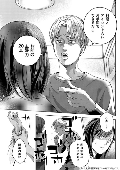 「お前の主婦力20点」「もはや妻としての価値0点」――結婚してから態度が豹変したモラハラ夫・尚弥は、妻・沙紀の家事を点数で否定する。辛くても娘のために耐える沙紀。