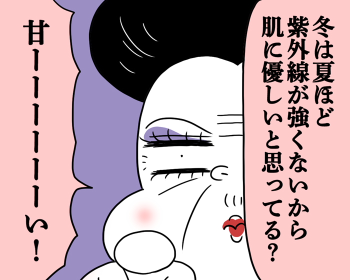 「はい。夏みたいにジリジリ強い日差しがあるわけじゃので、冬は日焼け止めクリームをやめて肌を休める方がいいと思っていたんですけど…もしかして、そんなことはないんですか?」
