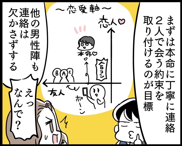 本命クンには2人で会う約束を、他の男子にはまた飲み会の約束を