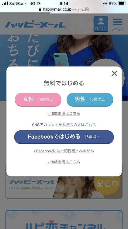 「登録は1分!」と謳われているハッピーメールですが、本当に簡単に登録できるのか、手続きは面倒ではないのか、編集部で実際に試してみました。