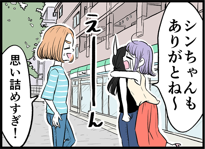前回までのお話では、主人公・リコが友人のノラちゃんに頼りすぎてケンカになってしまいます。離婚経験のあるシンちゃんに相談してアドバイスをもらったノラは、リコの元に仲直りに出向きますが……?