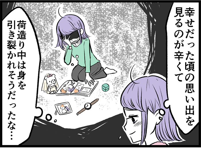 私の場合は自分が家を出ていく形だったので、二人の思い出のものは全て置いて出てきました。捨て過ぎたと思うくらい大量のものを処分し、二人で暮らした町からも離れて環境をガラッと変えました。