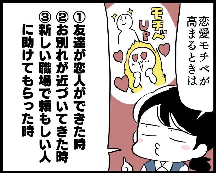 仕事が忙しかったり、自分で自分の機嫌が取れるようになって、他人との接触が減ったという可能性もあると思います。では、恋愛モチベーションを上げるにはどうすればいいのでしょう。