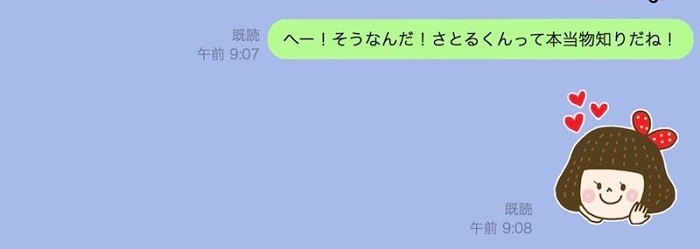 LINEでは、「スタンプだけで返信=会話終了」という暗黙の了解がありますよね。だから、モテる女性は必ずメッセージと一緒にスタンプを使います。さらに、スタンプの前のメッセージを返事をしてもしなくてもいい文章にすることで、会話を終わらせるかどうかを彼に委ねることができます。