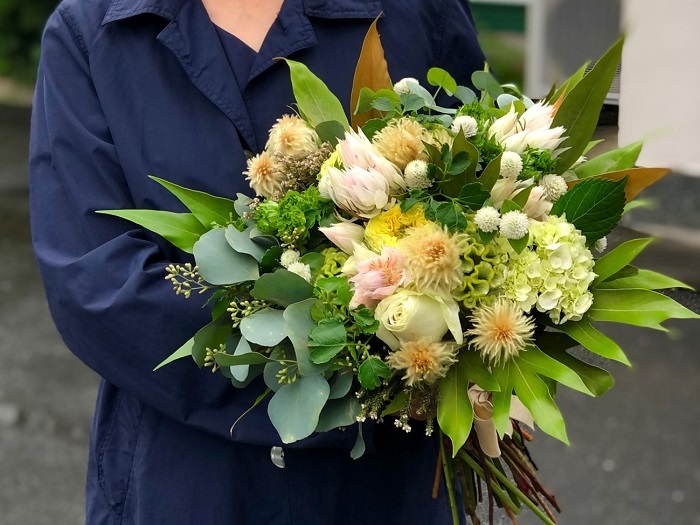 理由は当然、売ったお花に責任を持たなければならないからでございます。栽培農家さんやお花屋さんも、手間をかけたお花たちは花束や器に刺さったアレンジメントなどに姿を変えて、一番美しい状態でアナタのもとへ届けられます。
