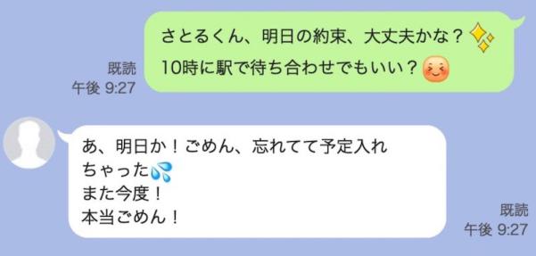 予定を立てていたのにドタキャンされる状況が続いているなら、脈なしと考えていいかもしれません。そもそも、あなたに対して恋愛感情を持っているなら、その予定を忘れるはずはありませんし、どうしても忙しい場合には違う日程に変更できるかを聞いてくるでしょう。