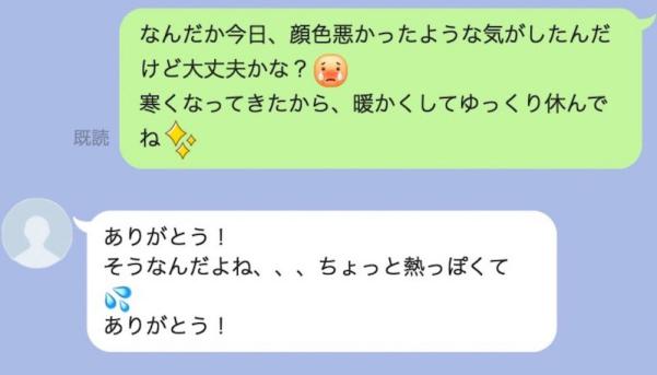 1.「顔色悪かったけど大丈夫?」などの気遣いLINE